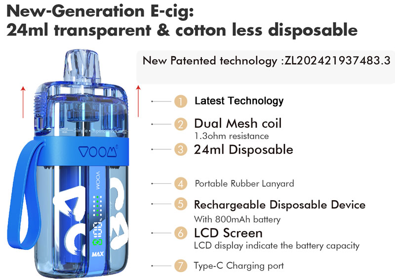 The VOOM Clear Max is the world’s first clear, cottonless, refillable disposable e-cigarette, offering a unique combination of convenience and performance.
